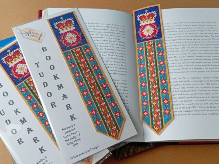 When you order 1 or more kits from my Tudor section, you'll receive a fabric bookmark featuring my design of Henry VIII's crowned Tudor Rose emblem, FREE in your parcel. Offer is limited to one bookmark per customer and offer ends midnight on 30 April 2026. Click the link below to find the kits that this offer applies to.